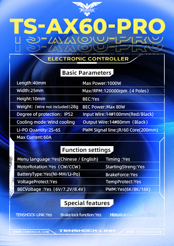 Tenshock TS-AX60-Pro Brushless ESC 60A Electronic Speed Controller for gliders