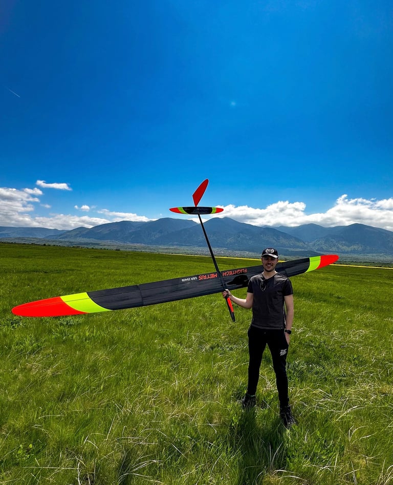 This is when I (Steve) arrived on the scene and from a very early age, I was fascinated with balsa model aircraft and started RC flying at the local slopes around the NE of England. I entered my first thermal soaring competition at age ten at the 1978 Barcs Radio glide championships, flying the very successful Neville Mattingly's 100-inch Phoenix design. I have been hooked on aeromodelling ever since and have flown many World Championships in both F3B and F5J glider classes. My son, Simon, is third generation team Haley learning to fly, competing in F3B and now Simon is flying F5J classes at a world championship level.